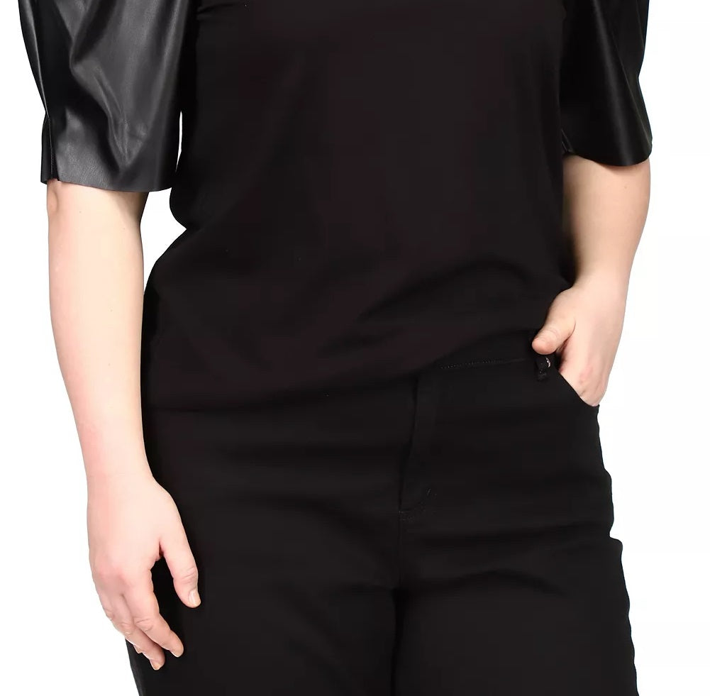 Voluminous faux-leather puff sleeves lend instant fashion-forward edge to this plus size top from Michael Kors