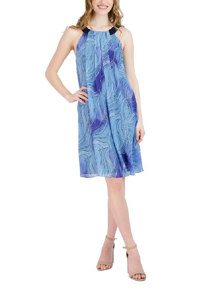 The effortless look of Robbie Bee's printed chiffon halter dress begins with neckline pleating and is finished with a flared A-line shape.| Approx. 40 long from center back neck to hem| Fitted through the chest and waist; structured A-line skirt sits slightly over hips| Chiffon; Smooth| sheer woven fabric| Round halter neckline with pleated detail; A-line silhouette| Pullover styling