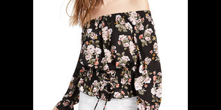 Ultra Flirt Junior's Smocked Off the Shoulder Top Black Size Large