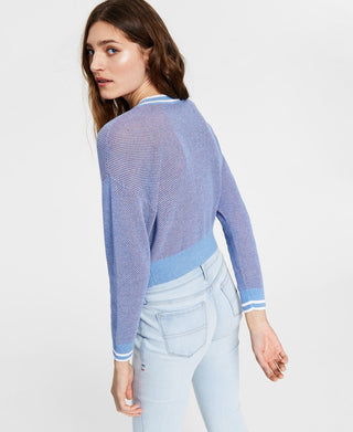 Tommy Jeans Women's Cotton Mesh Stitch Sweater Blue Size Large