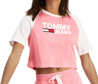 Tommy Jeans Women's Fused Logo Baseball T-Shirt Pink Size X-Large