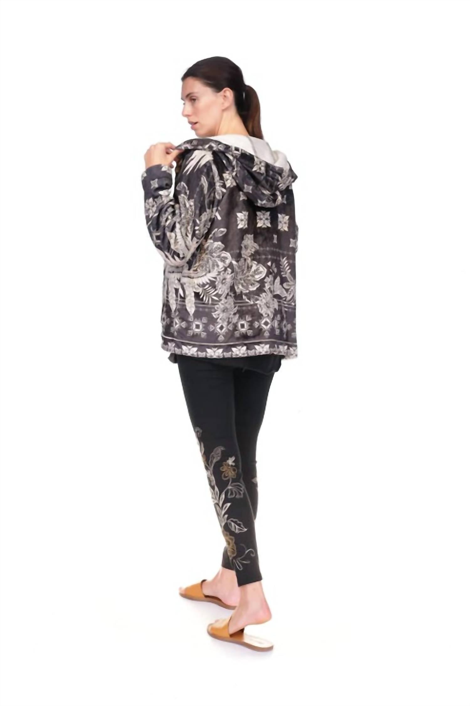 Downright adorable and so comfortable you won't want to take it off. This teddy jacket is a fan favorite. The Joan Zip Hoodie Sherpa Jacket is an eye-catching wardrobe statement piece, adorned with an intricate floral pattern. It features front pockets, a large hood, front zip closure, and soft faux sherpa lining, making it stylish and comfortable.