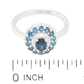 Gem Treasures 1.02ctw Indicolite & White Zircon Double Halo Ring