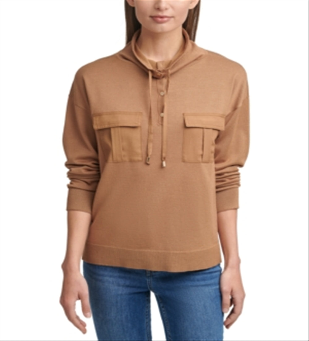 Military inspiration goes mod in this pullover funnel-neck top from Calvin Klein| Great with jeans|