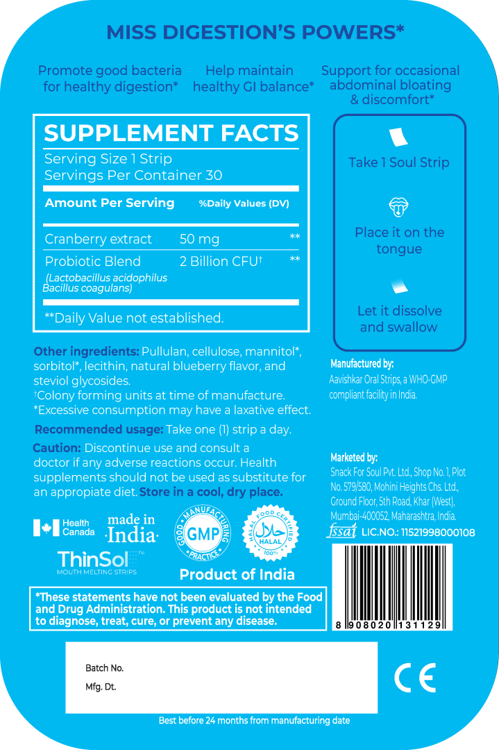 A probiotic oral strip that punches away digestion problems & enhances gut health. It contains good bacteria & cranberry extracts, to supercharge your digestion | Supplies good bacteria | Aids & improves digestion | Enhances gut health