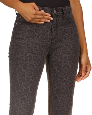 Michael Kors Women's Leopard Print Straight Skinny Jeans Black Size 8