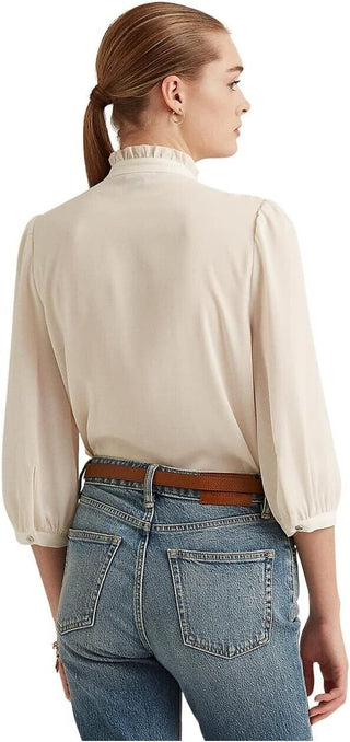 Ralph Lauren Women's Pleated Georgette Blouse Beige Size 2X