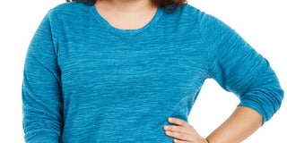 Karen Scott Women's Plus Marled Microfleece Top Blue Size 0X