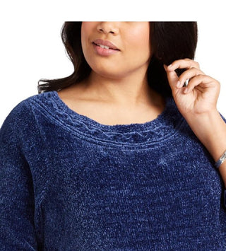 Karen Scott Women's Boat Neck Chenille Sweater Blue Size 1X