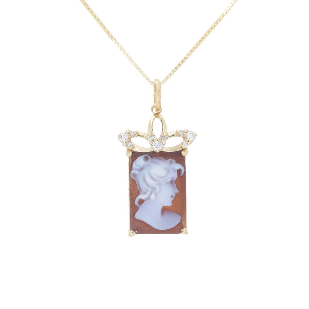 Cameo Italiano 14K Gold 13x9mm Portrait Cameo & Diamond Pendant w/ Chain