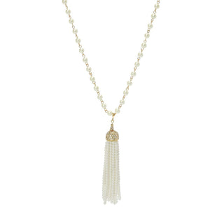 Kenneth Jay Lane Gold Plated Simulated Pearl Tassel 32" Necklace