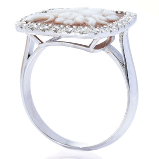 Cameo Italiano 14K Gold 14mm Floral Bouquet Cameo & Diamond Halo Ring