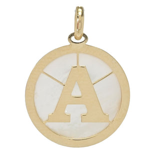 Viale18K Italian Gold 14.5mm Disc Mother-of-Pearl Initial Pendant