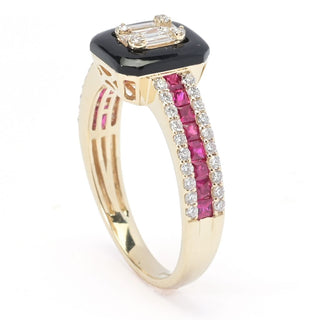 Sonia Bitton Galerie de Bijoux 0.92ctw Black Onyx, Diamond & Ruby Ring