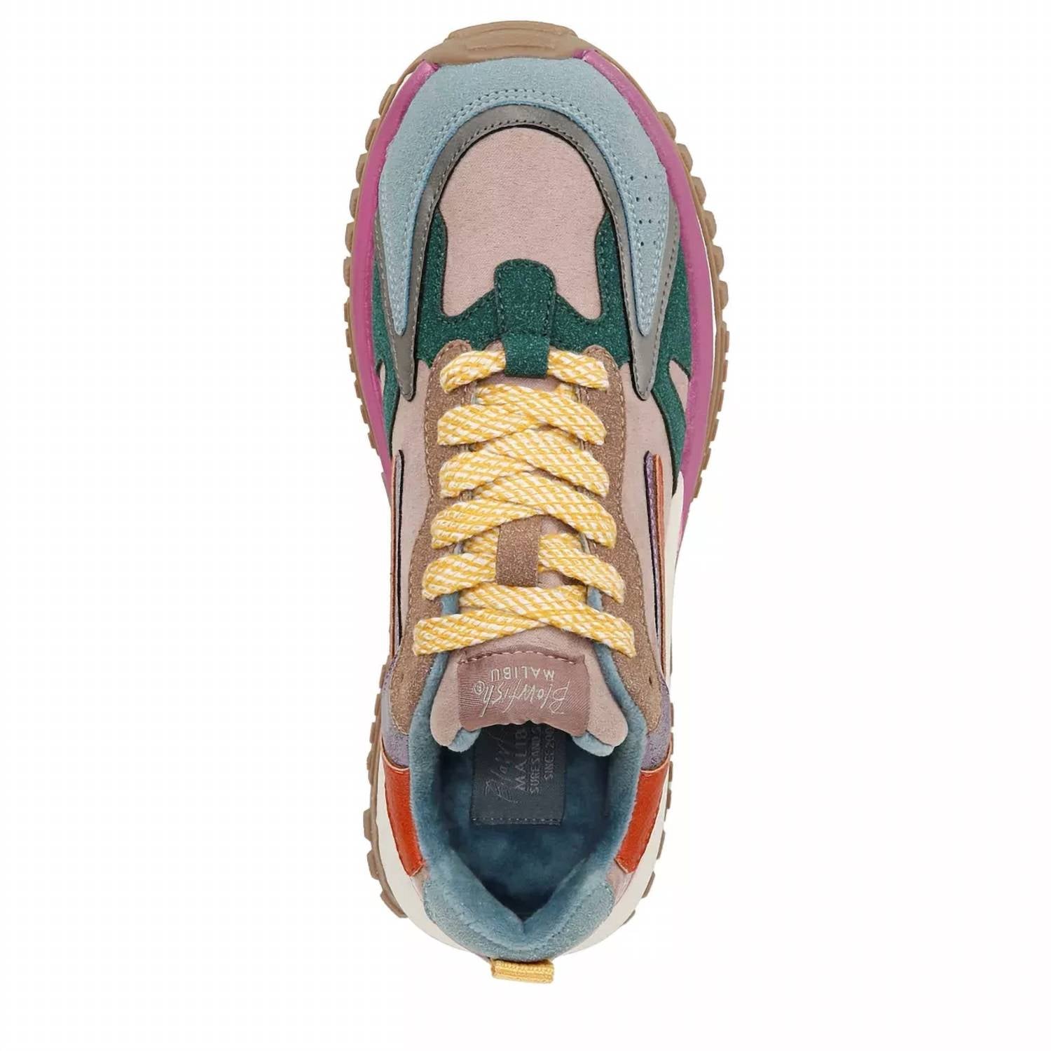 Elevate your sneaker ensemble with the Women's Color Block Chunky Sneakers by BLOWFISH, crafted from vegan suede in a striking mauve/whiskey color palette. Designed with a round toe and a platform lug trainer wedge, these sneakers promise both style and comfort. The functional laces and cushioned footbed ensure an ultra-comfortable fit, making them a versatile choice for any fashion-forward individual.