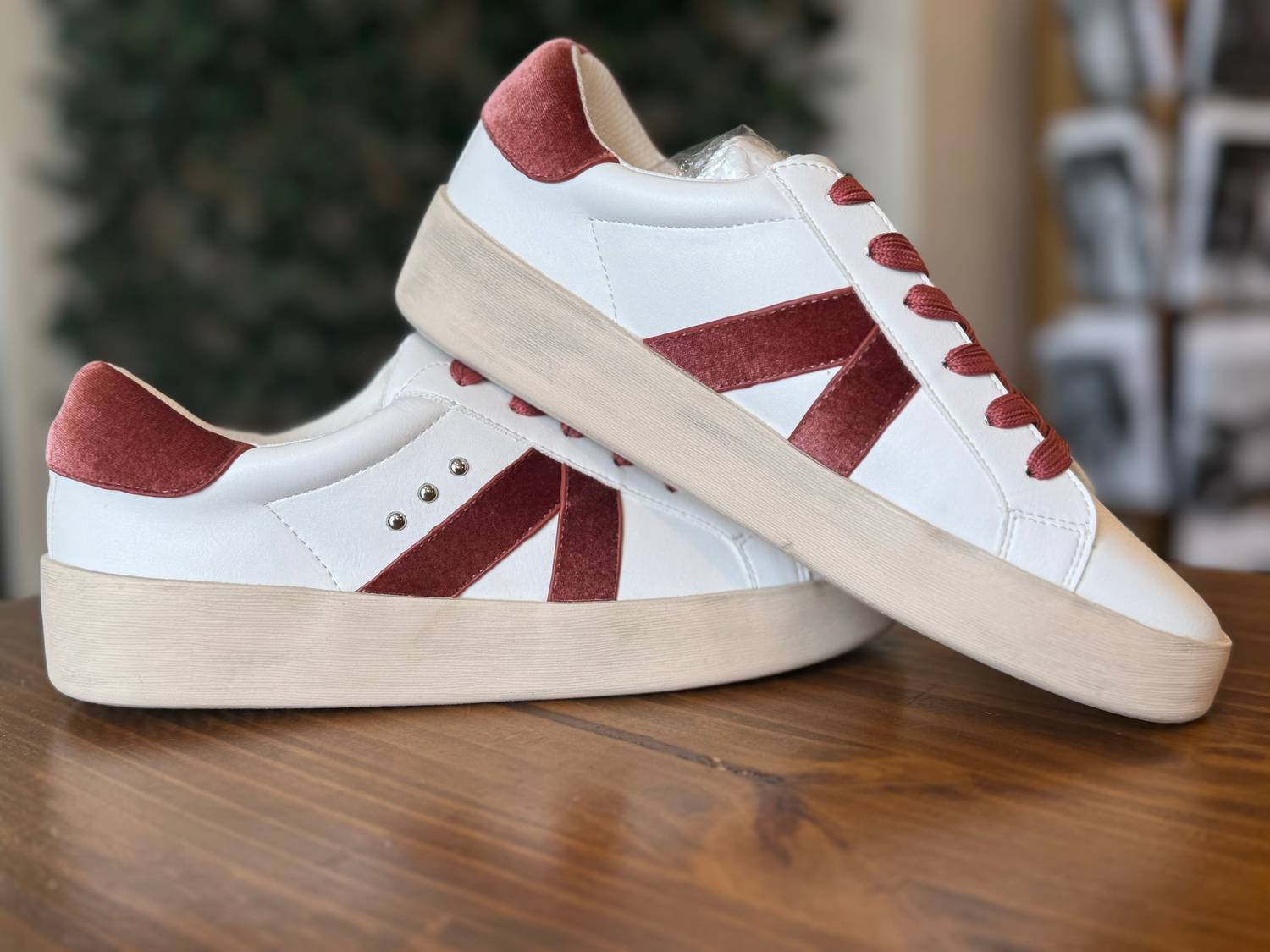 Cute, functional, and comfortable. These sneakers check all the boxes. Step out in style with the Women's No Chaser Sneakers by Corkys Footwear, crafted from luxurious blush velvet suede. Perfect for any streetwear look, these sneakers boast a lace-up style featuring stripe patches and studs, adding flair to your wardrobe. Designed with comfort in mind, enjoy all-day wear thanks to the cushioned insoles and a durable rubber outsole that ensures steady footing. Ideal for back-to-school season or making a statement at 4th of July events, these flat heel round-toe sneakers are a must-have summer addition.