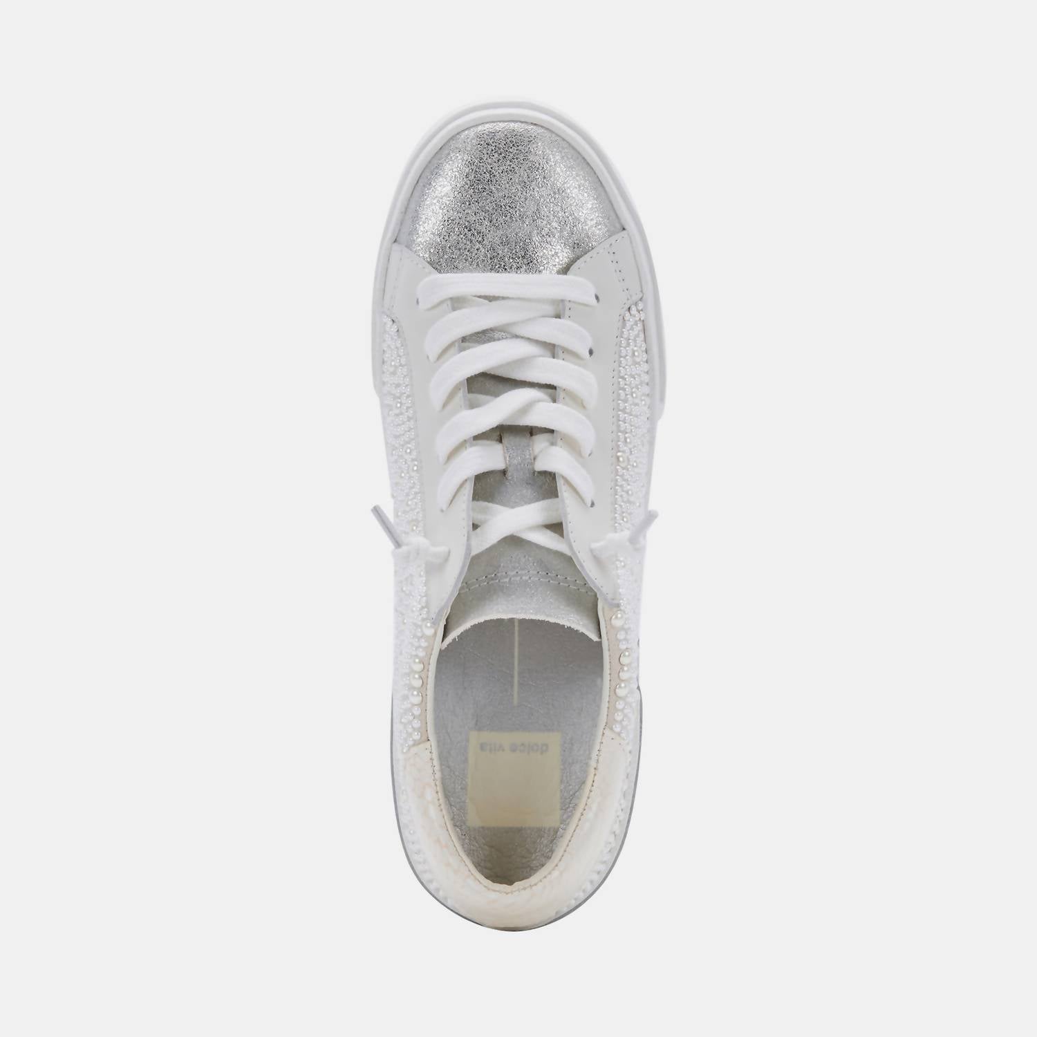 When fashion and function come together seamlessly. Step up your sneaker game with the Women's Zina Pearl Sneakers by Dolce Vita, a symphony of style featuring this season's must-have embellishment. Crafted with a stunning leather and pearl upper, these sneakers are perfect for making a bold statement. Enjoy comfort with the synthetic sock and lining, paired with a durable rubber outsole. Imported and including a reusable 100% organic cotton dust bag, these sneakers in Vanilla Pearls are the ultimate travel companion for your spring streetwear look.
