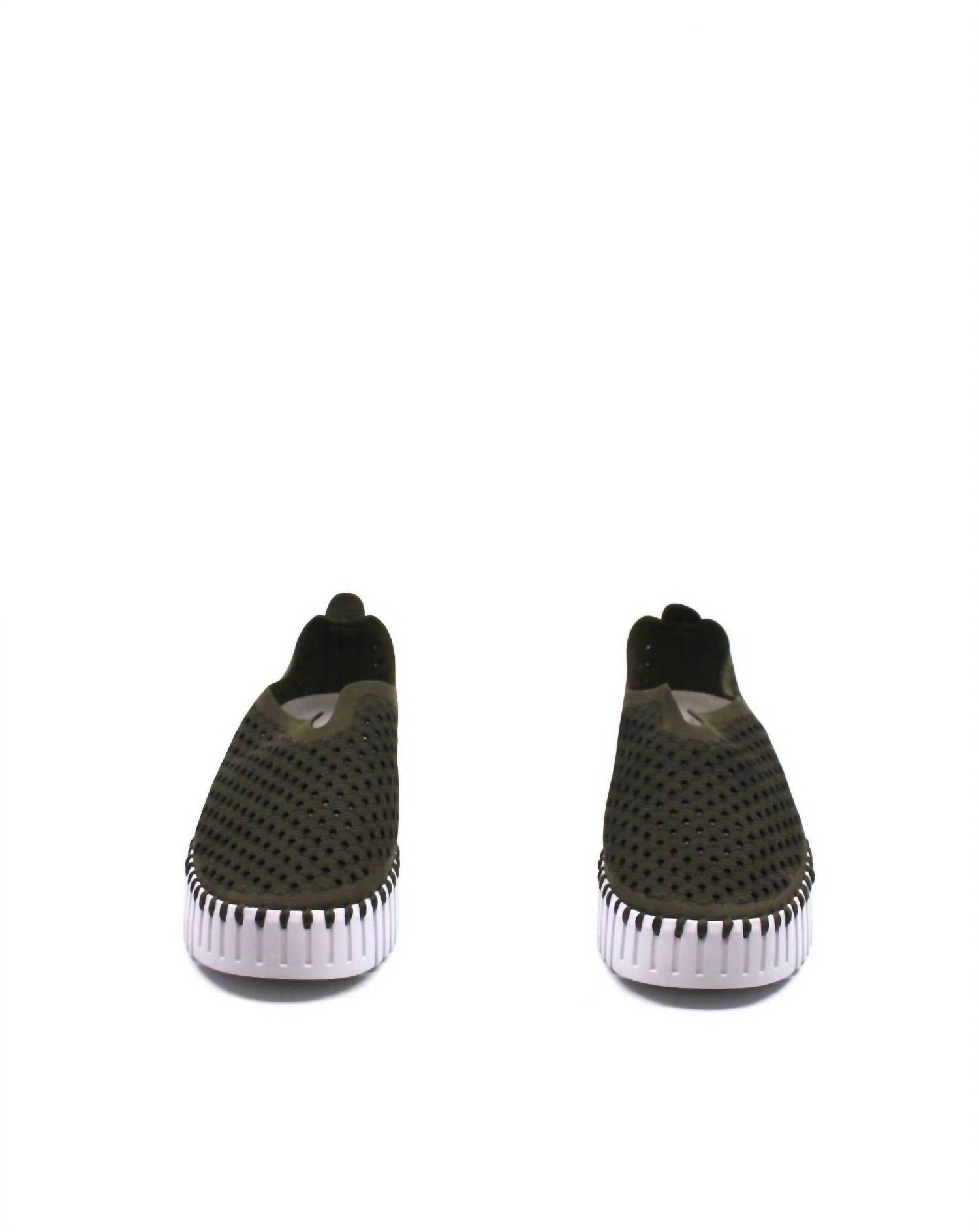 Cute, functional, and comfortable. These sneakers check all the boxes. Get ready to elevate your everyday style with this updated take on a fan favorite. Designed with travel and all-day comfort in mind, this platform version of the beloved Tulip shoe features a breathable upper with a scalloped laser-cut pattern, made from recycled microfiber. The flexible natural rubber outsole adds to its lightweight feel, while the platform footbed provides extra cushioning and support. With a glue-free construction and matching recycled stitching, this versatile and stylish shoe is perfect for any occasion.