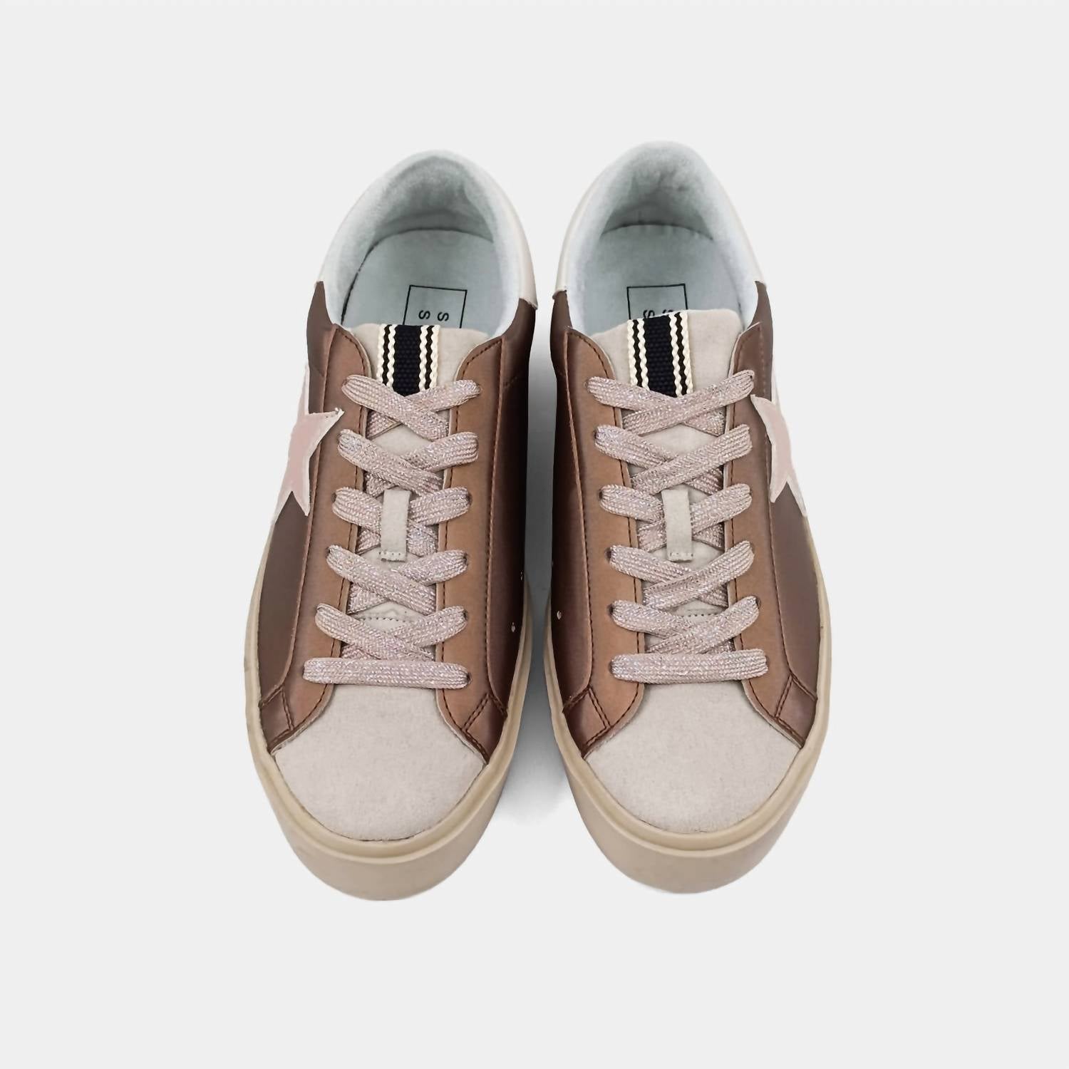 Introducing the Women's Reba Sneaker by SHU SHOP, a stylish fusion of timeless design and modern flair. These dark taupe sneakers feature a comfortable round toe and a flat heel under 1 inch, ideal for streetwear looks during summer vacations. Experience optimal support with their chunky, cushioned soles, making them perfect for any occasion. Elevate your footwear collection with this versatile shoe designed to pair seamlessly with various outfits.