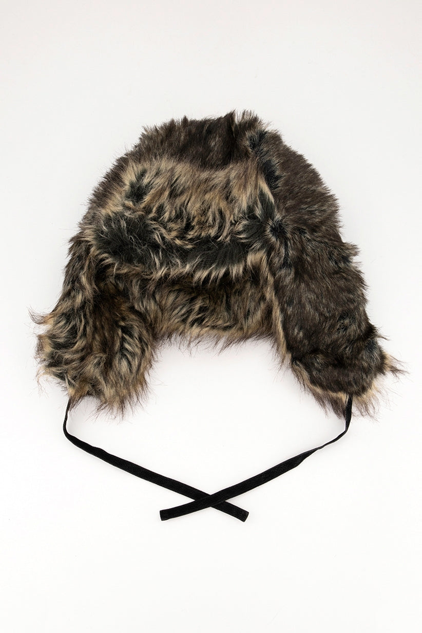 Faux-suede ties|Quilted plaid lining|A classic rustic look in faux fur|A classic rustic look in faux fur
