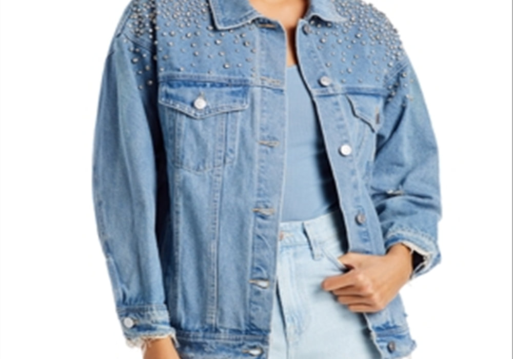 Womens Denim Jacket|Rhinestone|Distressed Cold Weather