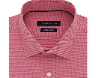 Tommy Hilfiger Men's Slim-Fit Non-Iron Performance Stretch Check Dress Shirt Bright Red Size 16.5X32-33