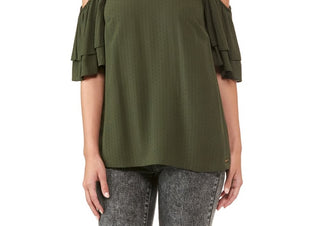 Michael Kors Womens Green Short Sleeve Jewel Neck Top Green Size Medium
