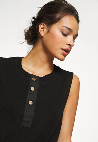 Free People Women's Peek Aye Henley Bodysuit Black Size Medium
