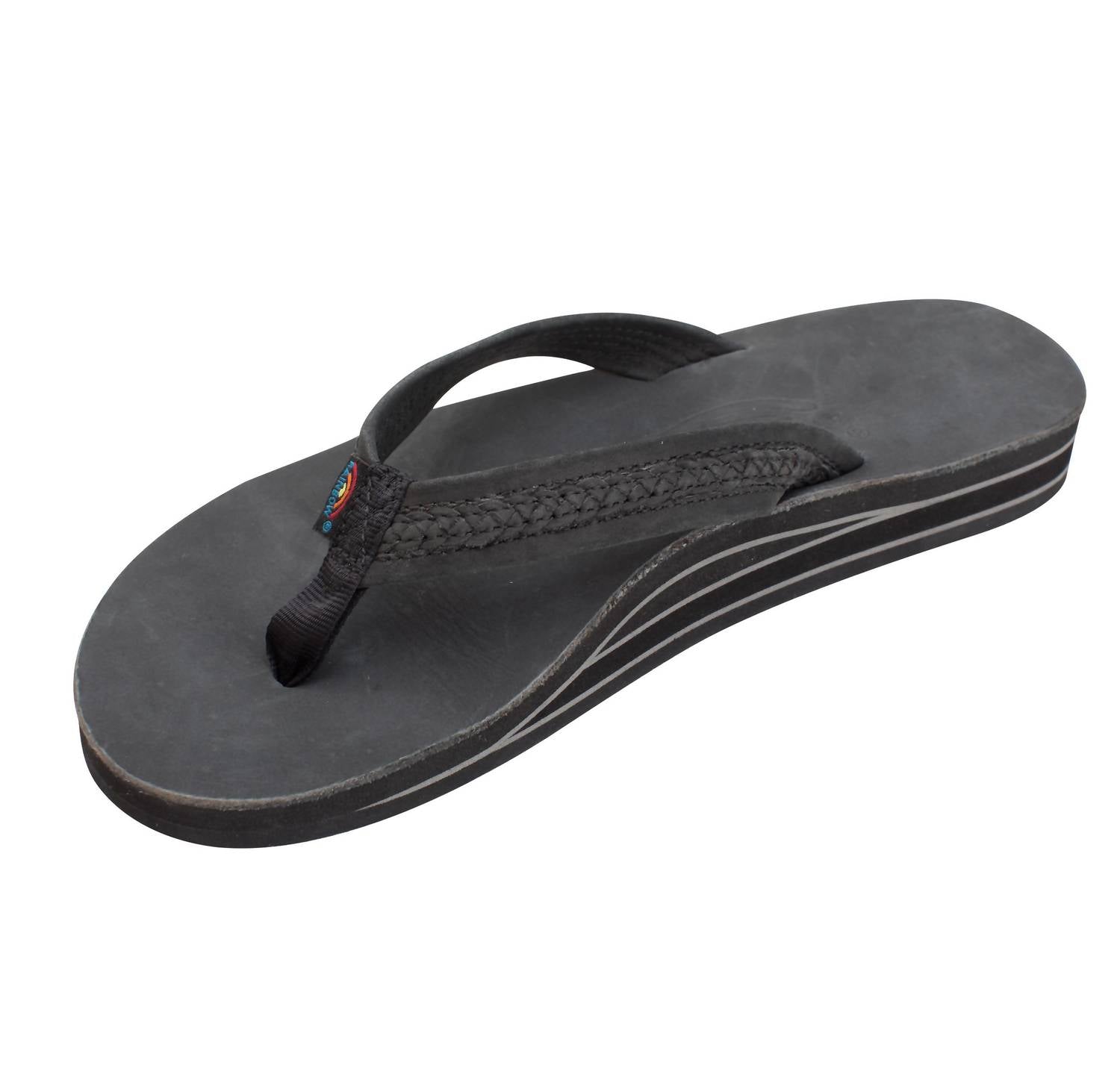 This sandal will take you from brunch to dinner and everything in between. Discover the Women's Willow Double Layer Arch Support Leather Sandal by RAINBOW SANDALS, featuring a Premier Black tone for sleek summer streetwear style. Crafted with premier nubuck leather, these sandals offer a comfortable fit with their double layer arch and molds to your individual foot. The inset braided design and 3/4" medium strap add a touch of elegance, while the durable construction is reinforced with double stitching and bonded nylon thread. Note, contact with water can cause some leather dyes to bleed, so it's best to keep these stylish sandals dry.