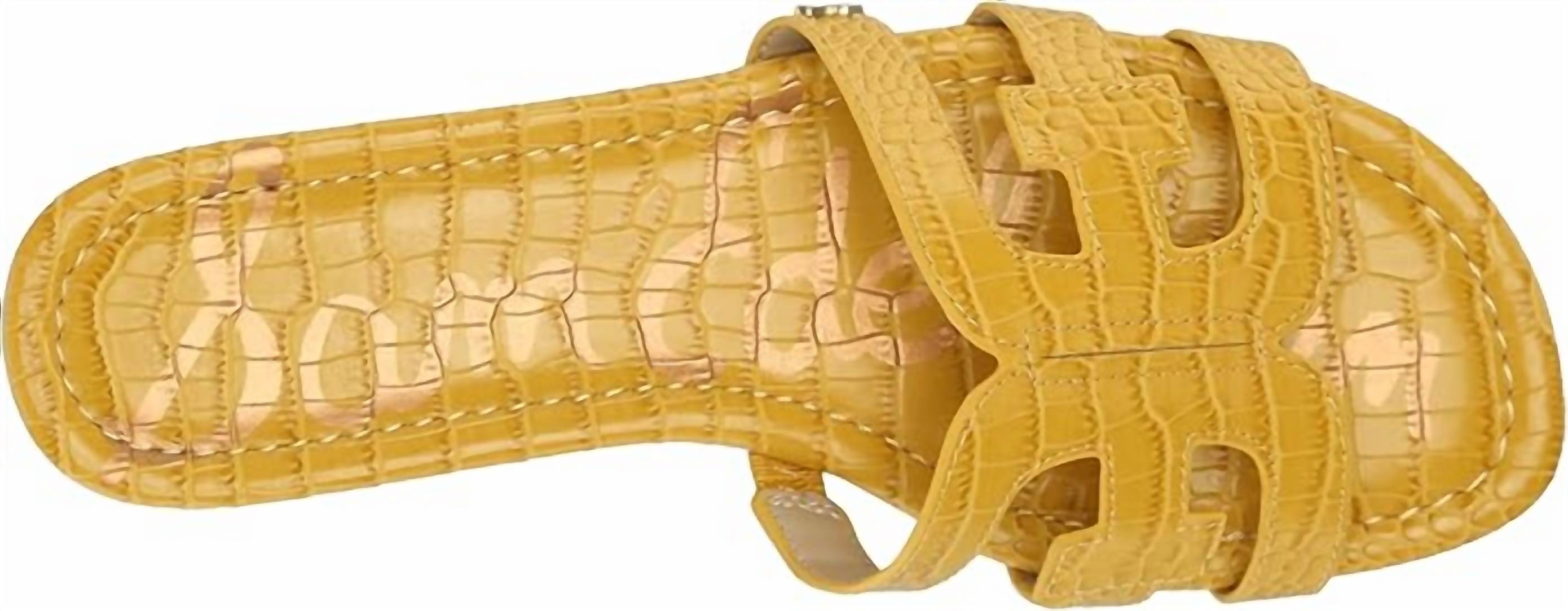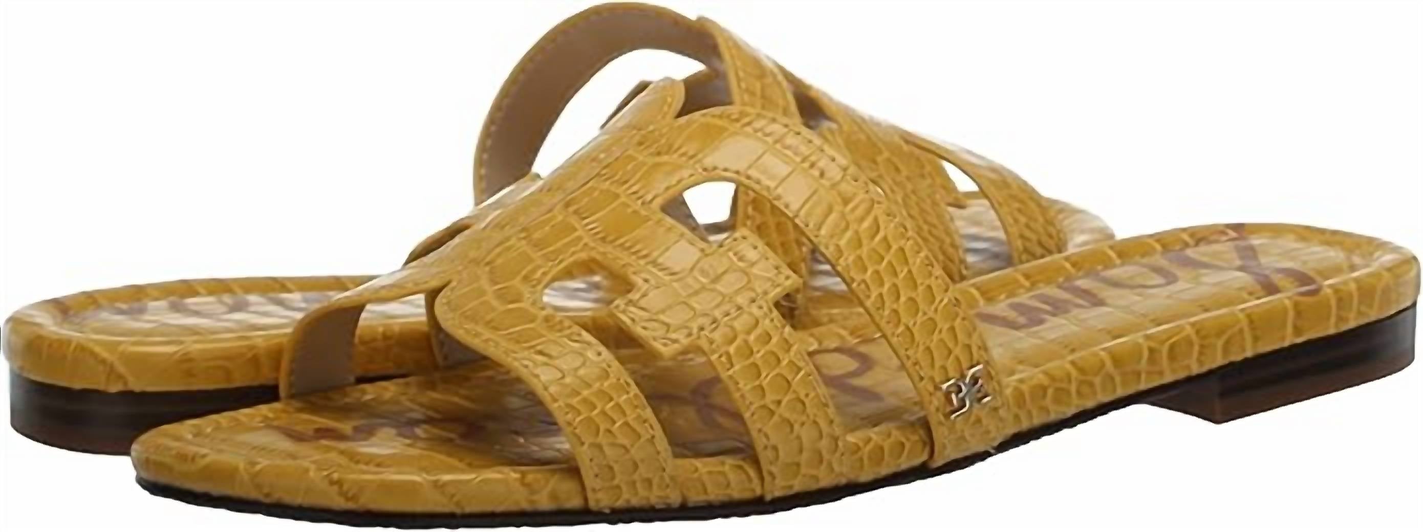 So comfy it's like you're walking on clouds. Introducing the Bay Sunflower Slide Mules by Sam Edelman, a must-have for your summer wardrobe. These women's sandals feature an open toe design and are crafted from 100% leather, complemented by a synthetic sole for added comfort. The slip-on style ensures easy wearability, and they are true to size, making them perfect for vacations or festive occasions like Thanksgiving. Embrace the season with these eye-catching, jewel-embellished flats.