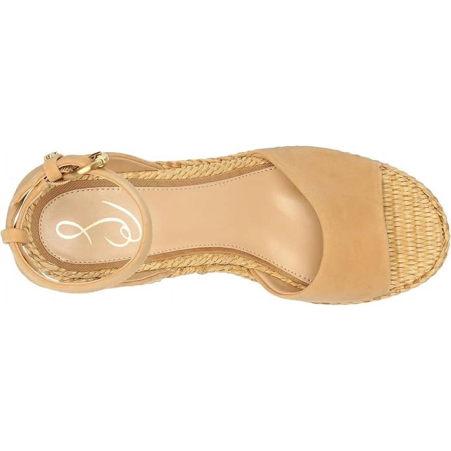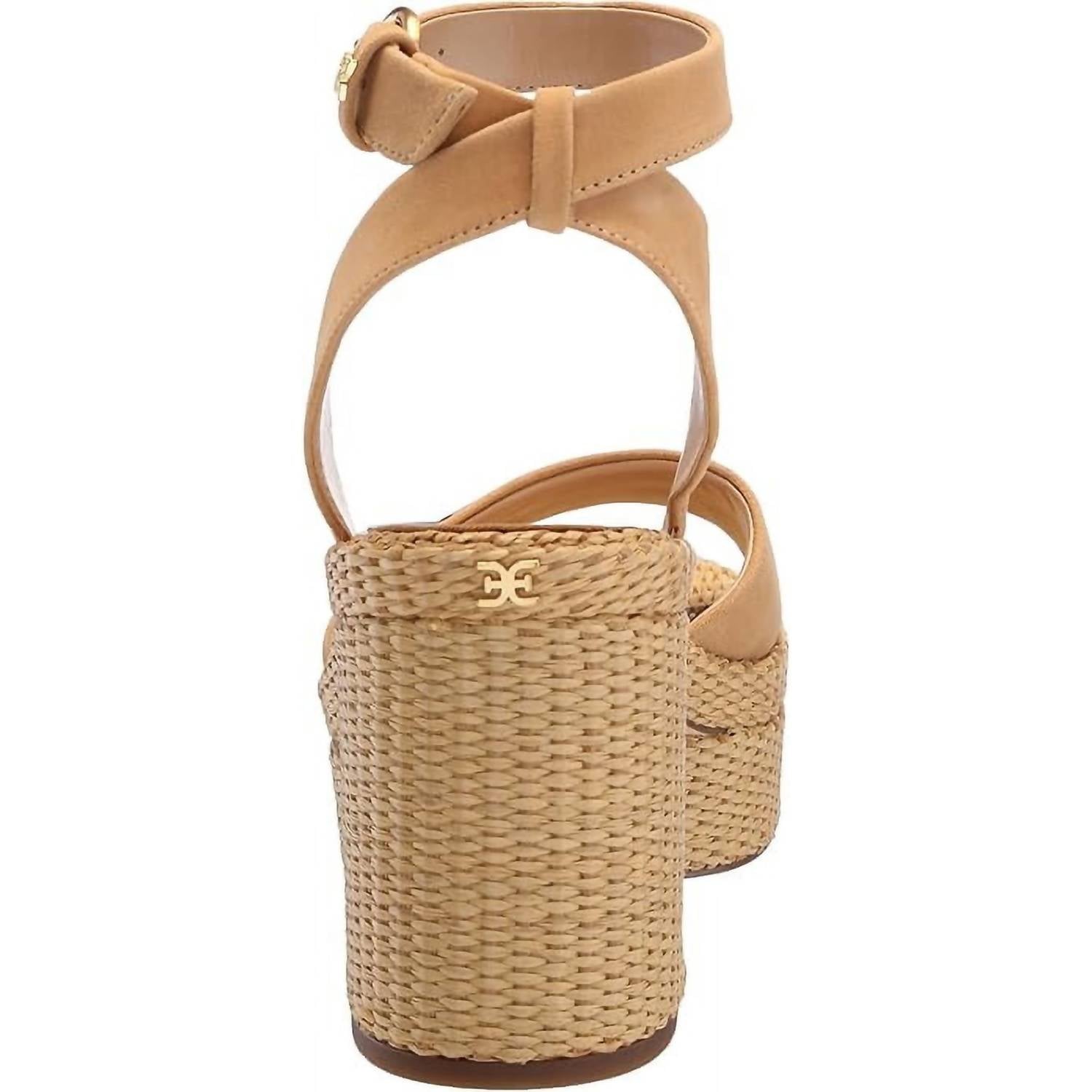 The perfect variation on one of our favorite trends this season. Elevate your style with the Women's Immie Ankle Strap Open Toe Block Heeled Fashion Sandals by Sam Edelman in sophisticated Sand Dune. These platforms feature a 4-inch block heel and a 1.25-inch platform, providing just the right height for any occasion. Expertly crafted from a blend of fabric and leather with a synthetic insole, this chic sandal is secured with a buckle closure, making it perfect for both summer suiting and after-hours attire. Ideal for the fall season, particularly for Thanksgiving gatherings or vacation outings.