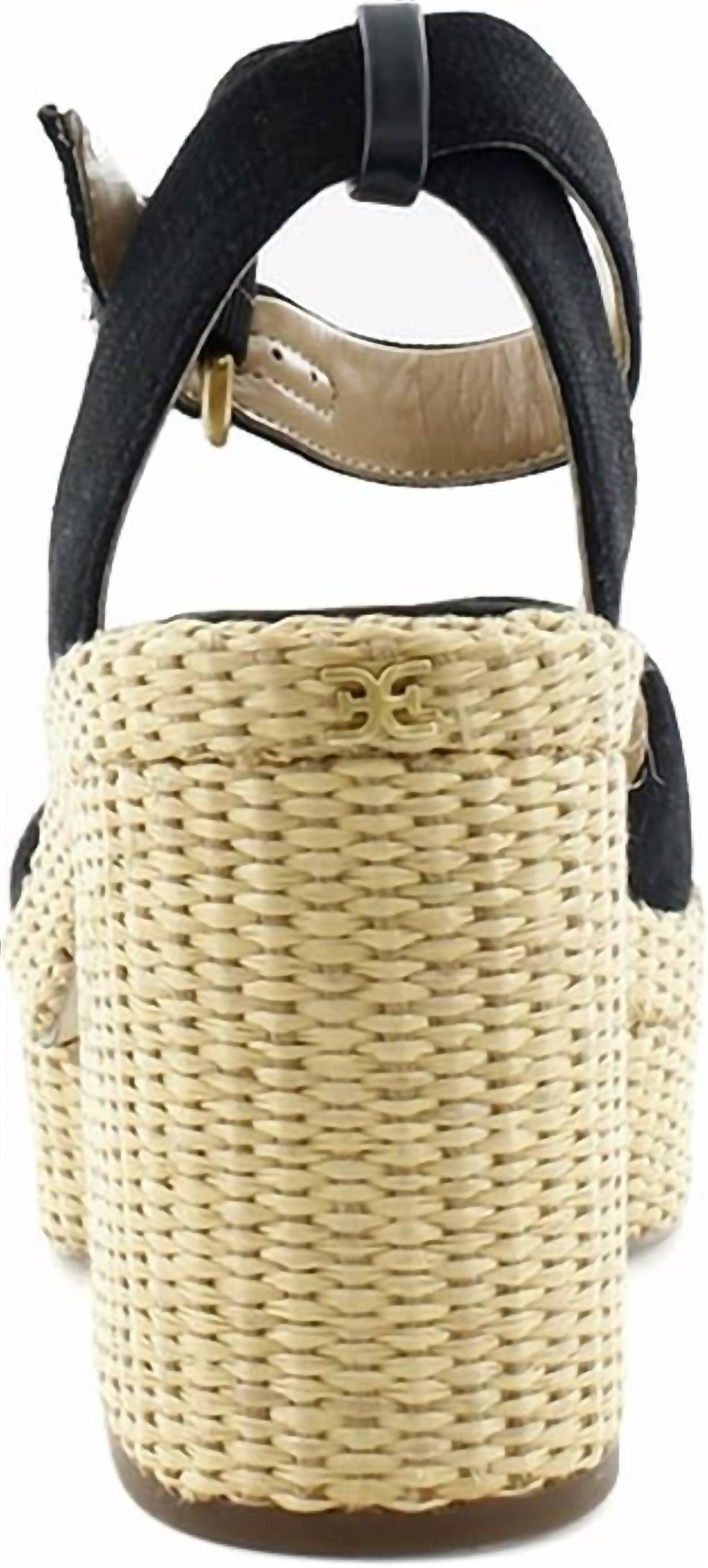 This sandal will take you from brunch to dinner and everything in between. Step into elegance with the Women's Immie Block Heeled Sandal by Sam Edelman, crafted in a chic black linen with a fine woven geometric design. These stylish sandals feature a high block heel at 4 inches and a 1.25-inch platform, ensuring both height and comfort. Constructed with a blend of fabric and leather, they boast a synthetic insole and a practical buckle closure. Ideal for summer events and cocktail evenings, these sandals offer a minimalistic yet sophisticated touch to any outfit.