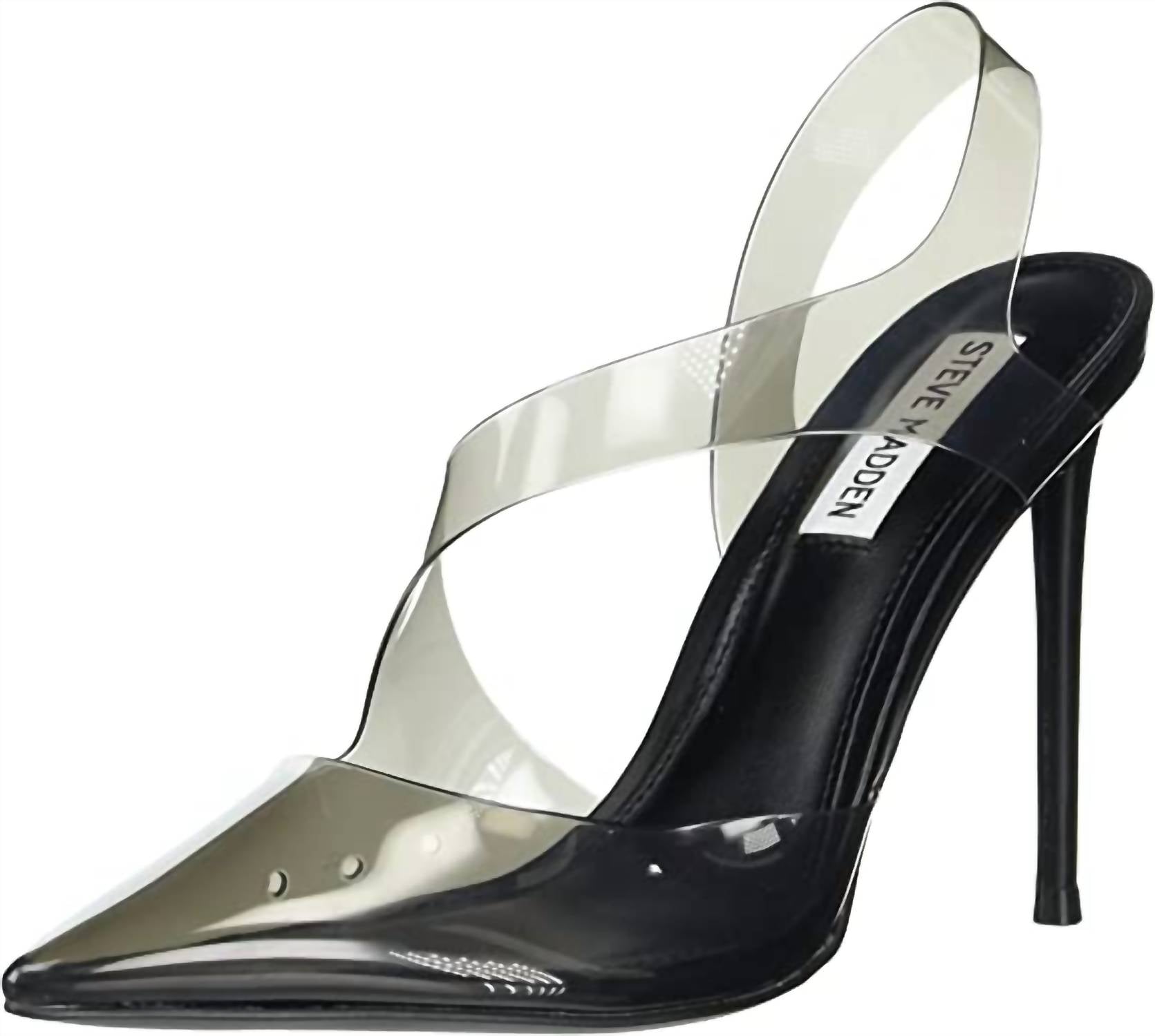 Flowy dresses, cropped pants, and even jumpsuits... this sandal works with them all! Elevate your style with the Women's Vienne Pointed Toe Stiletto Slip On Dress Heeled Sandals by Steve Madden. These chic sandals feature a sleek synthetic lucite upper, a sophisticated pointed toe, and a high stiletto heel measuring approximately 4 inches. Designed with convenience in mind, they boast a slip-on closure for easy wear. Ideal for any fashion-forward setting, these sandals effortlessly blend modern elegance with timeless charm.