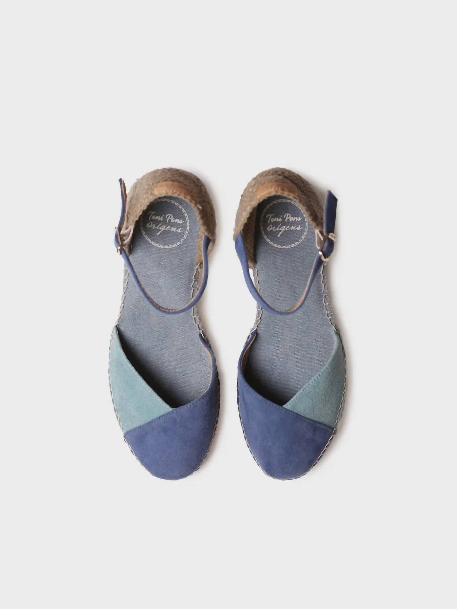 This sandal will take you from brunch to dinner and everything in between. Step into summer style with the Toni Pons Women's Beral Sandal in Indigo/Aqua, a perfect blend of coastal elegance and everyday comfort. These sandals feature a breathable canvas upper with vibrant two-tone design, classic jute detailing, and a round toe shape. With a wedge heel and adjustable ankle strap, they offer a secure fit ideal for seaside strolls and casual brunches. Expertly crafted for vacation-ready looks, they embody minimalist trends perfect for warm-weather escapades. Final sale; no returns or exchanges.