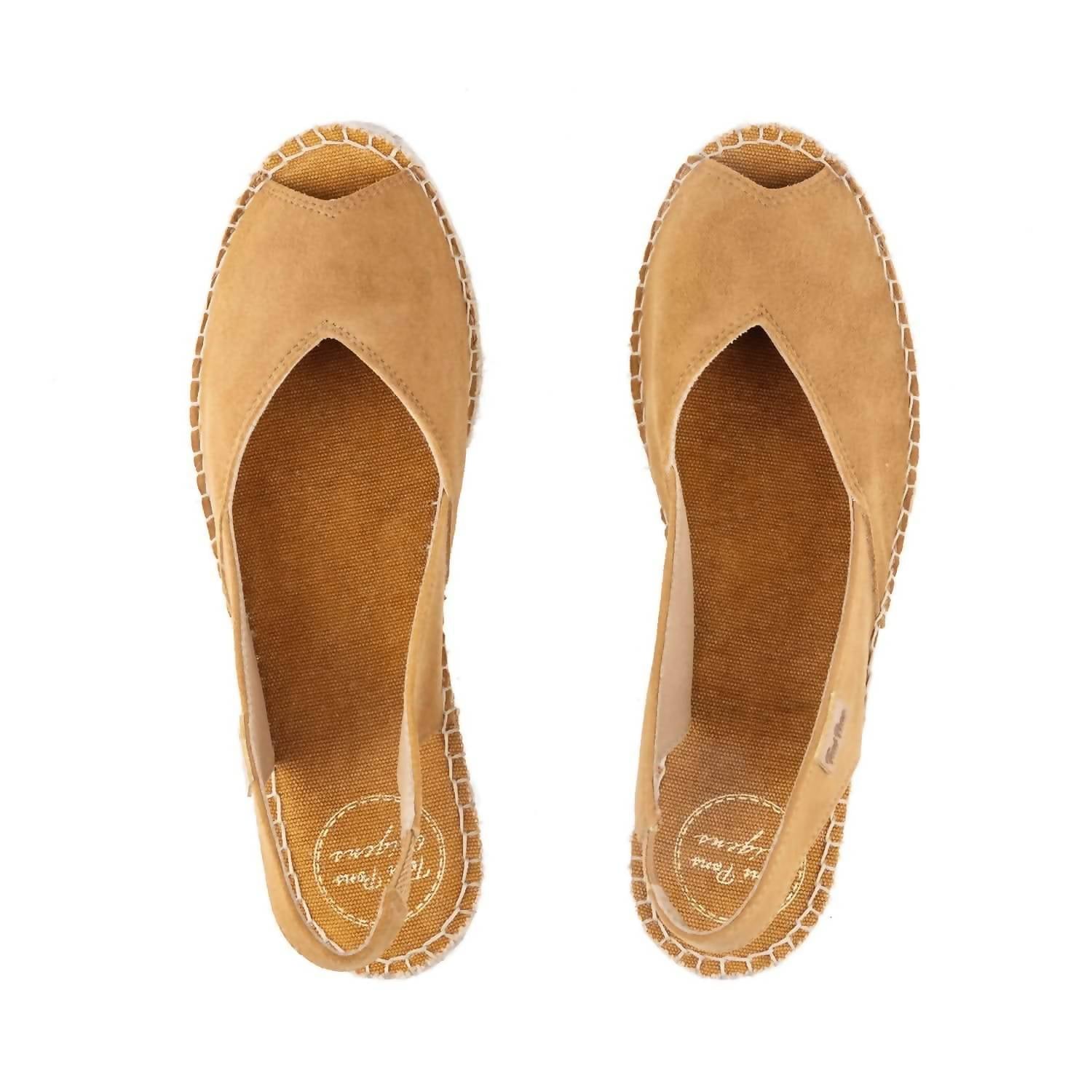 Classicly cute and all-day-wearable. We love this sandal. Elevate your summer style with the Women's Bernia Sandal by Toni Pons, a tan espadrille wedge that embodies casual elegance. Designed with a leather composition and featuring a chic jute wedge, this sandal is perfect for dinner parties or boho chic occasions. The peep toe and elasticated back strap offer both style and comfort, ensuring a snug fit. Made for adult women, this summer shoe is ideal for day or night plans; be sure to size up if in between sizes for the best fit.