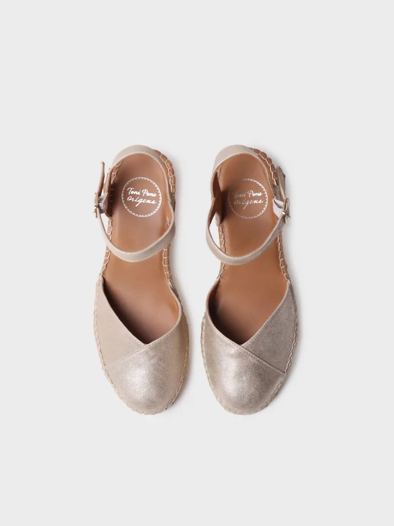 Flowy dresses, cropped pants, and even jumpsuits... this sandal works with them all! Introducing the Bianca Sandal by Toni Pons, the epitome of quiet luxury and sophistication in elegant champagne. Perfect for summer engagements, this sandal features a comfortable wedge heel and a graceful round toe shape. Made for women, it's a stylish choice for those looking to elevate their fashion game with refined simplicity. Please note, this item is final sale, with no returns or exchanges.