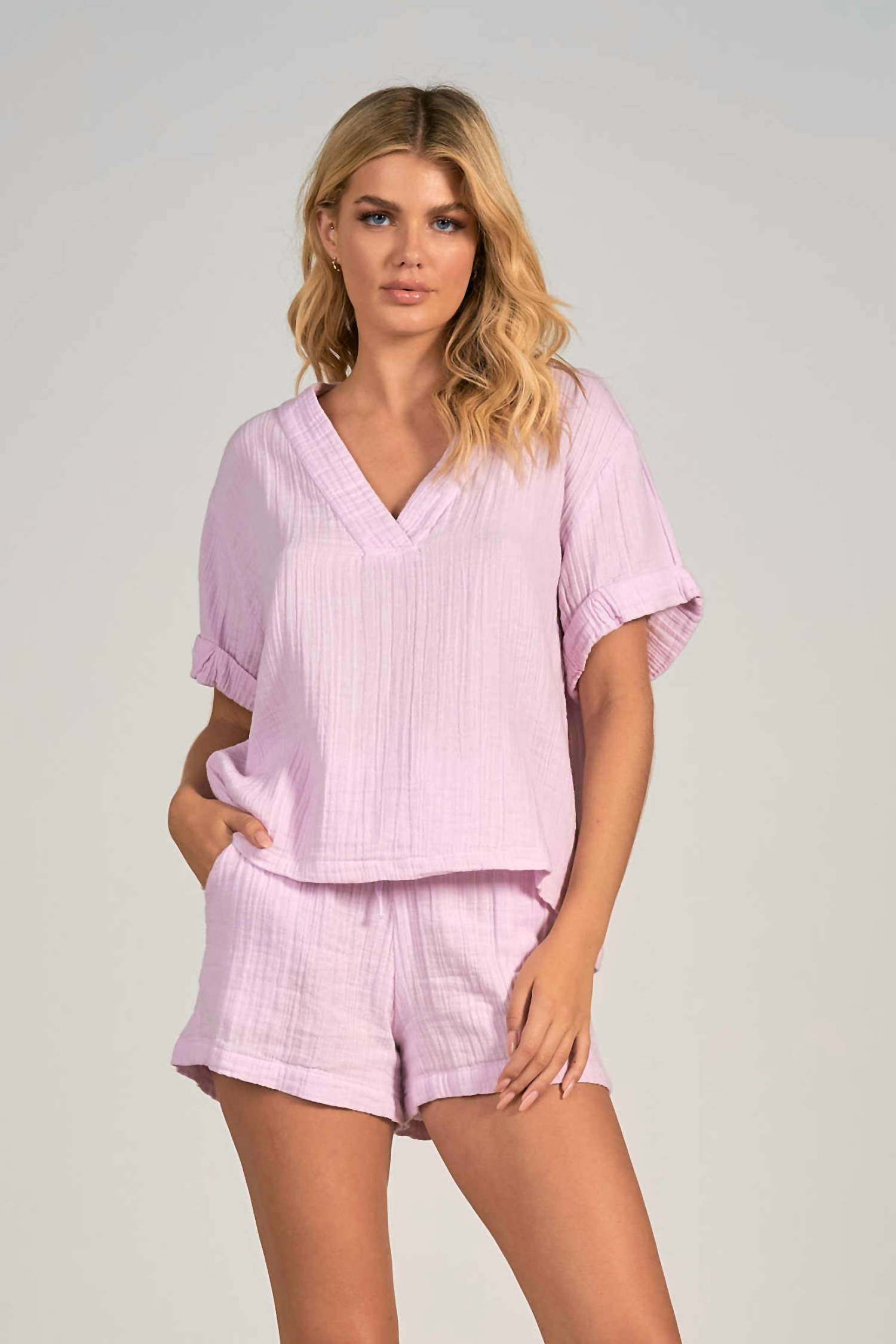 Elan - Short Sleeve Cotton Gauze V-neck Top