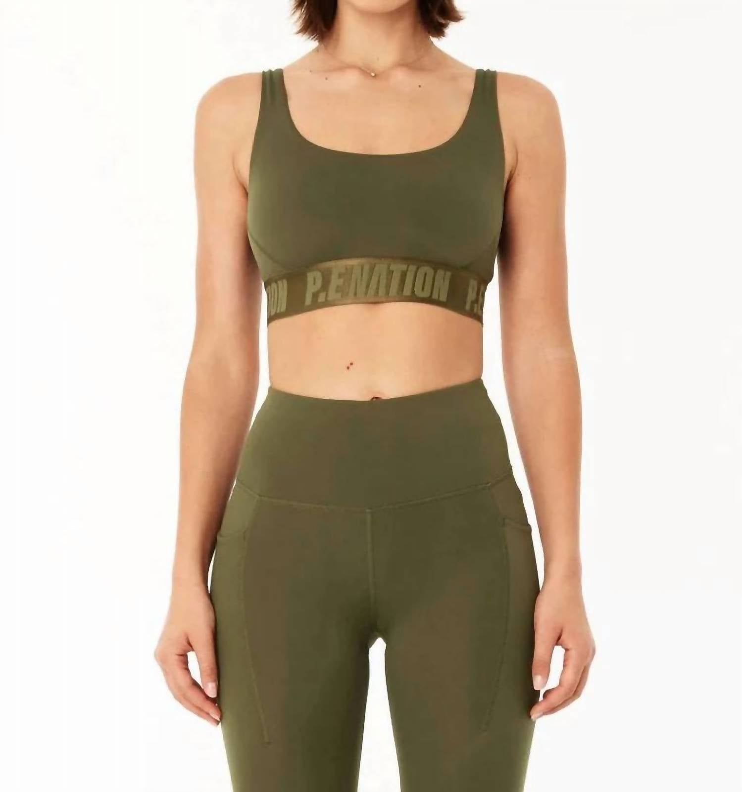 Elevate your workout game with the Backcheck Sports Bra by P.E. NATION, crafted in a chic khaki shade for women. This supportive piece is designed from a butter-soft P.E LITE fabric that offers comfort during running and HIIT sessions. Composition: 82% Nylon, 18% Elastane. Customize the fit with adjustable straps. Care instructions: Machine wash and lay flat to dry.