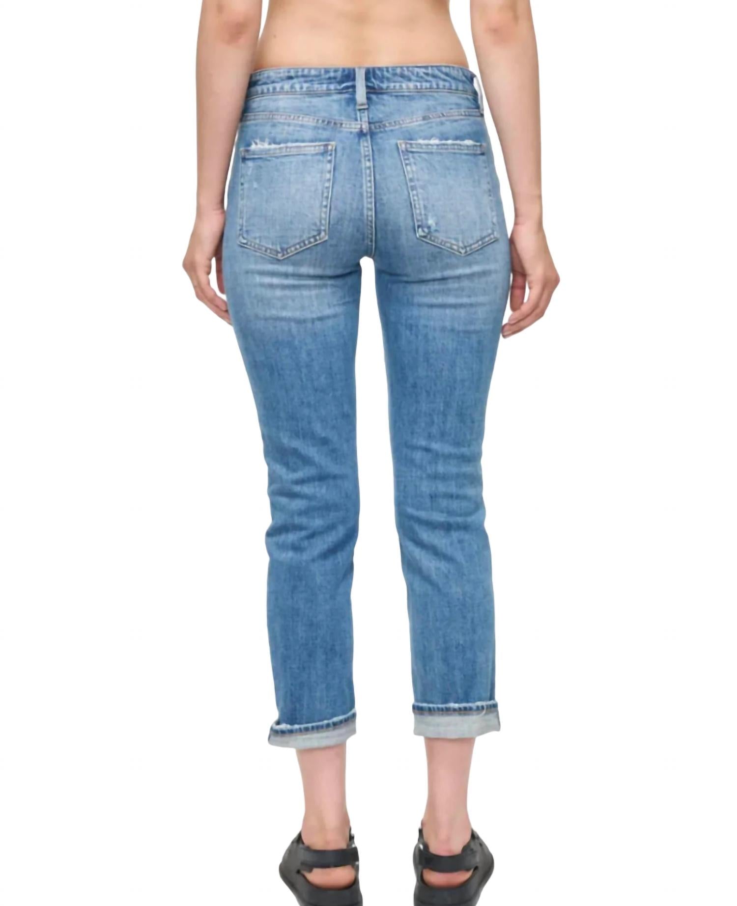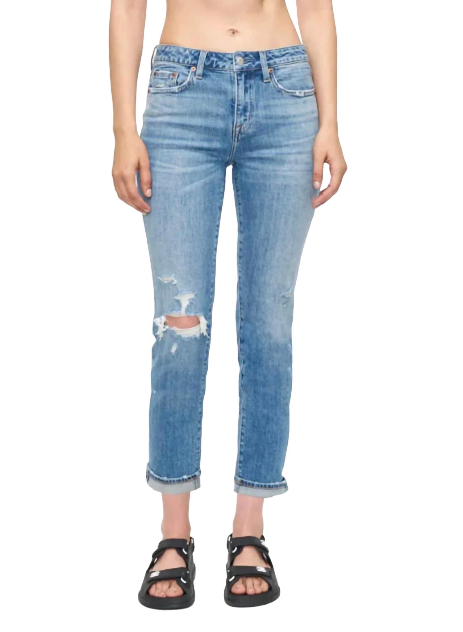 Pair these straight leg jeans with flats, sandals or even heels! You can't go wrong.Classic straight leg jean. Mid rise. Slim fit. Comfort stretch. Ankle length. Distressed wash with knee distressing. Fabric: 72% Cotton 27% Rayon 1% Spandex. True to size. Model is 5'9" wearing size 26. Measurements - Rise: 10", Inseam: 27.5", Leg Opening: 13".
