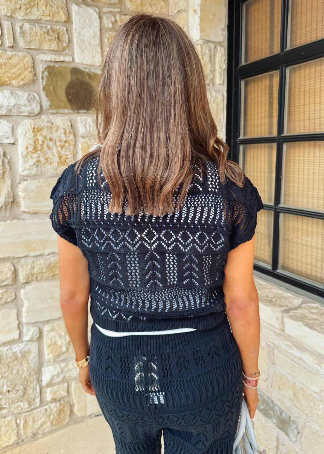 Introducing the Vanessa Crop Crochet Top by ELAN, a boho-chic essential in versatile black. This short-sleeve top features a crew neck and is expertly crafted from delicate crochet with a composition of 70% polyester and 30% cotton. Designed with a pull-on closure, it promises cool comfort for any summer outing. Care instructions include hand wash cold, hang dry only, and avoiding bleach, dry cleaning, and tumble drying.