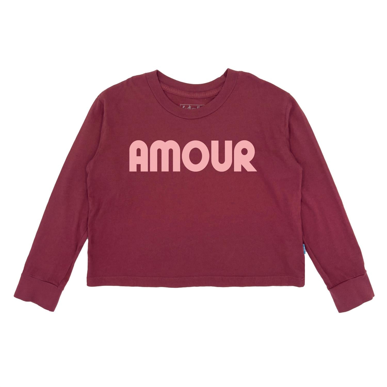 Introducing the Amour Long Sleeve Crop Tee by Feather 4 Arrow, perfect for adding a touch of preppy style to any holiday party. This girl's tee in brick features long sleeves and a playful graphic pattern. Designed for spring occasions like the 4th of July, it offers effortless style and comfort. Care instructions include machine wash and tumble dry for easy maintenance.
