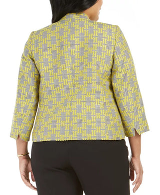 Kasper Women's Plus Size Jacquard Plaid Jacket Yellow Size 14