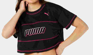 Puma Women's Modern Sports Cotton Mesh Colorblocked Cropped T-Shirt Black Size X-Small