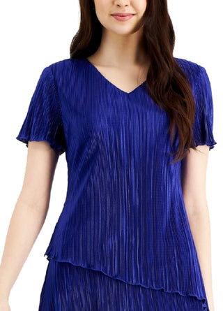 Connected Women's Tiered Pleated Sheath Dress Blue Size 12Petite