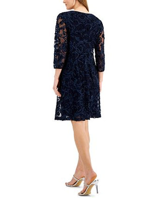Connected Women's Soutache Bodice Cocktail Dress Blue Size 4