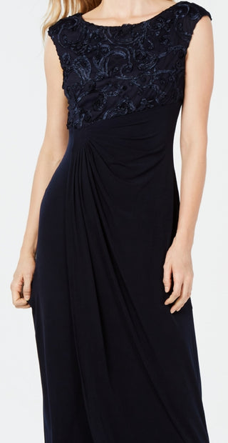 Connected Women's Soutache Faux Wrap Gown Blue Size 10 Petite