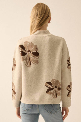 Promesa - Floral-Pattern Knit Mock-Neck Sweater