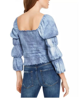Rewash Junior's Tie Dyed Smocked Ruffle Trimmed Top Medium Blue Size X-Small