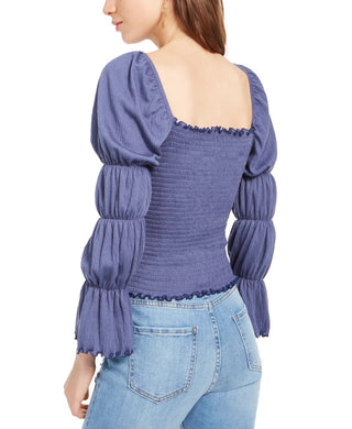 Rewash Junior's Smocked Ruffle Trimmed Top Blue Size Large