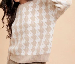 Anniewear - Houndstooth Round Neck Sweater